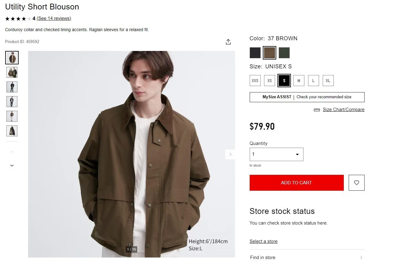 Honestly, I’m surprised Uniqlo has a piece like this; 100% cotton makeup for most of the jacket. Also, there’s a ton of features to this jacket (such as the corduroy collar). Cropped cut and it’s made to be true-to-size.