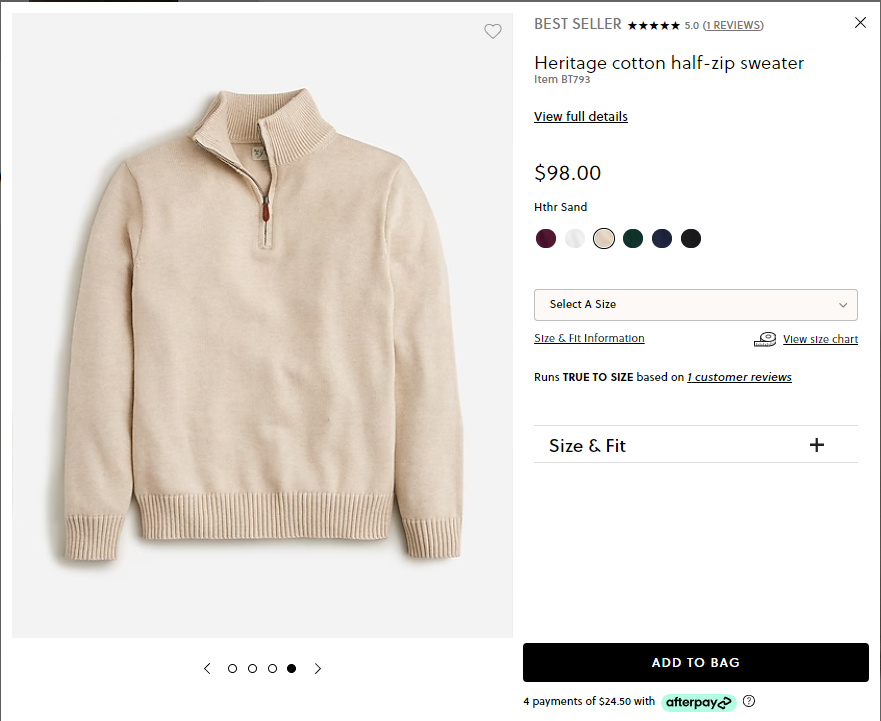 These also caught my eye. I personally love the look and extra pop that half/quarter-zip sweaters give off compared to your standard crewneck. While I’m not really sure what heritage cotton means, the fabric looks absolutely sublime. It has a visible thick knit (for cotton) and gives a beautiful pop of color (not to mention, there are more bright colors that still fall in line with the upcoming Autumn/Winter season). The fabric looks sluggish on the outside and yet, has the appearance of a blanket; definitely worth looking into. I also like the scrunched bottom waistband; it’ll sit on your hips without being too flowy. 100% cotton and it keeps you warm—$98 for this is definitely worth it in my opinion.